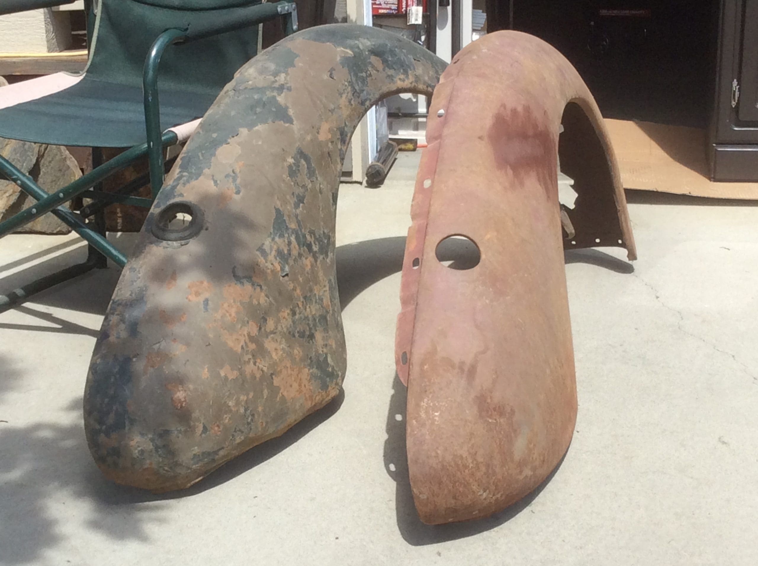 2 Rear fenders for ‘37 – ‘38 Chev. Near perfect condition with no dents as per photo. Gives you the chance to go all steel & all real! $400.00 each