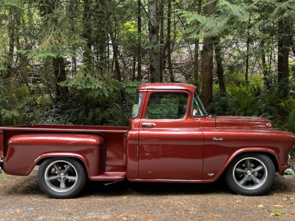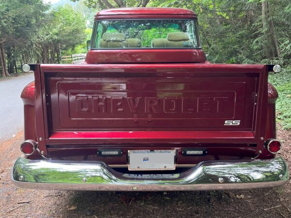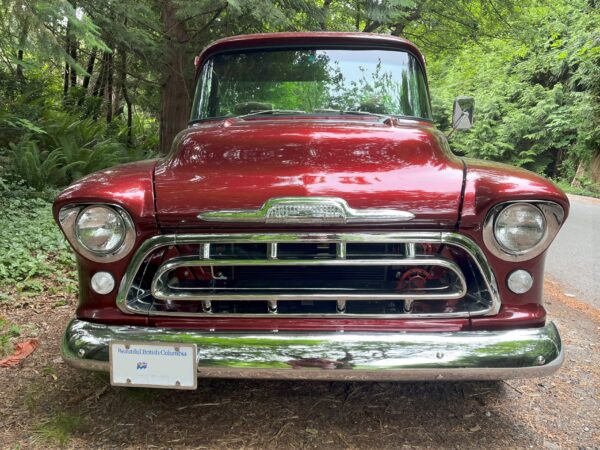1957 Chevrolet Big Window Step Side Pickup. Immaculate ground up restoration, GM LT1 V8 with factory fuel injection mated to a Tremec T56 6 spd transmission, limited slip differential. Billet hood hinges and serpentine pulley kit. QA1 coil over suspension front (independent) and rear (parallel bar) with heavy duty sway bars. Disc brakes with stainless brake lines. Custom aluminium fuel tank, all stainless fasteners. One piece glass electric windows with central locking and air conditioning (Vintage Air). Premium Kenwood/Infinity sound with backup/forward facing cameras. VDO gauges and auto headlights. Auto dimming mirror. Polished stainless tilt steering column with leather wrapped steering wheel.