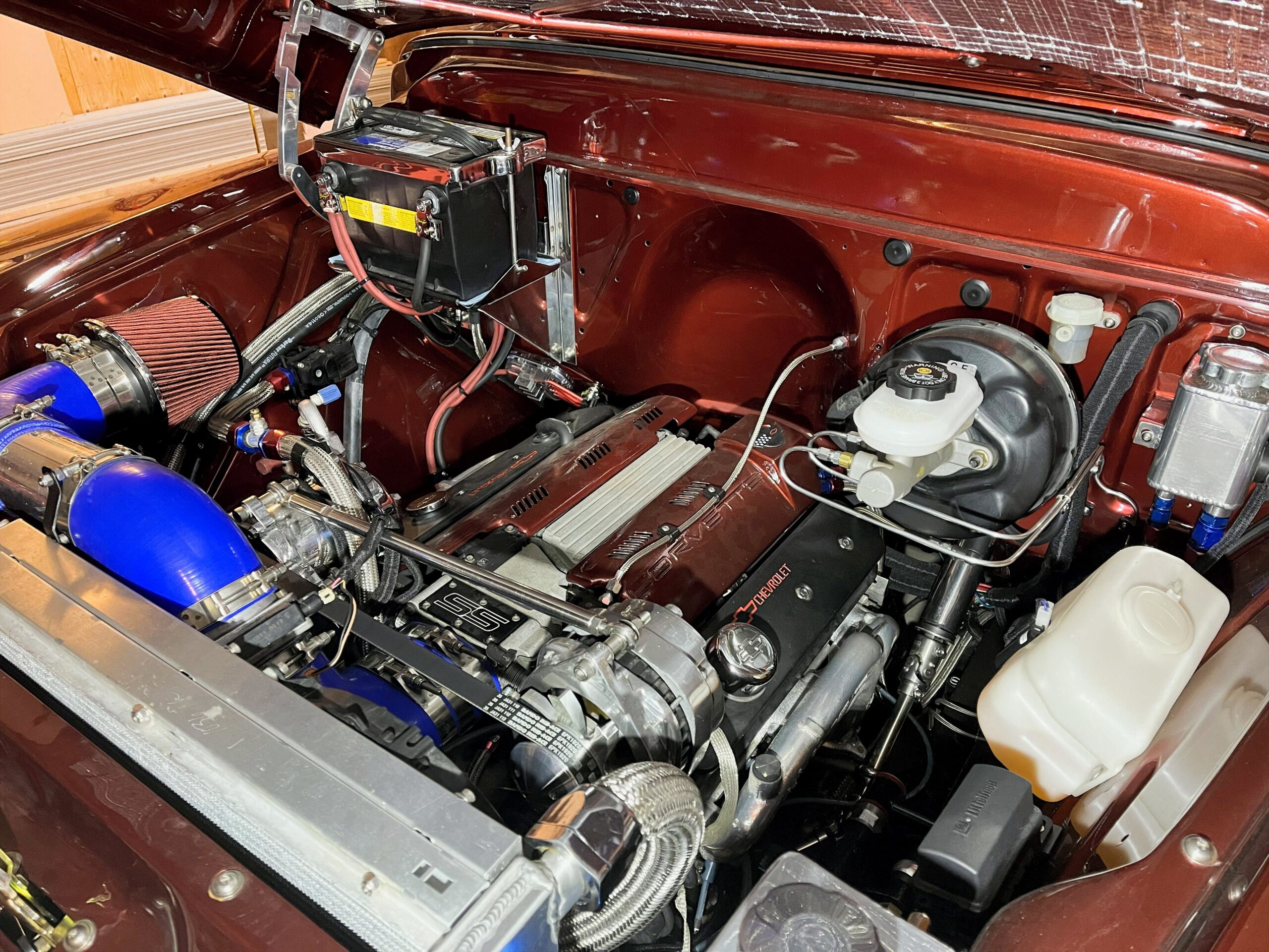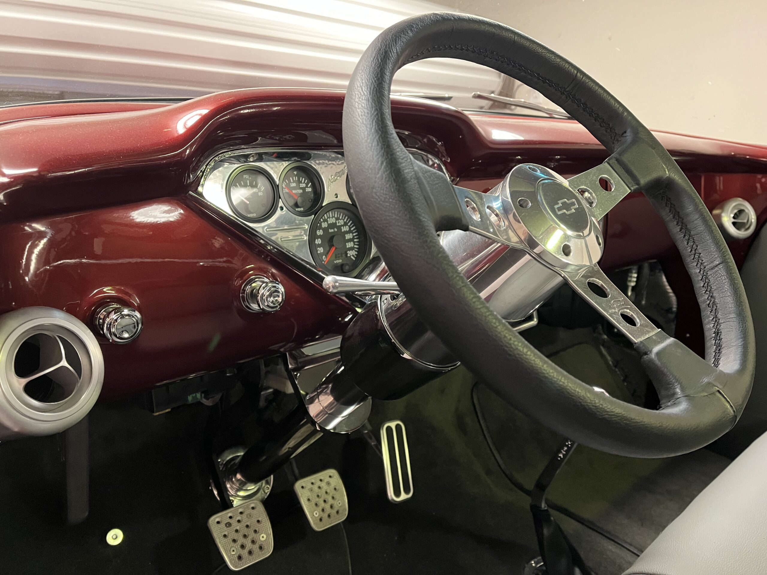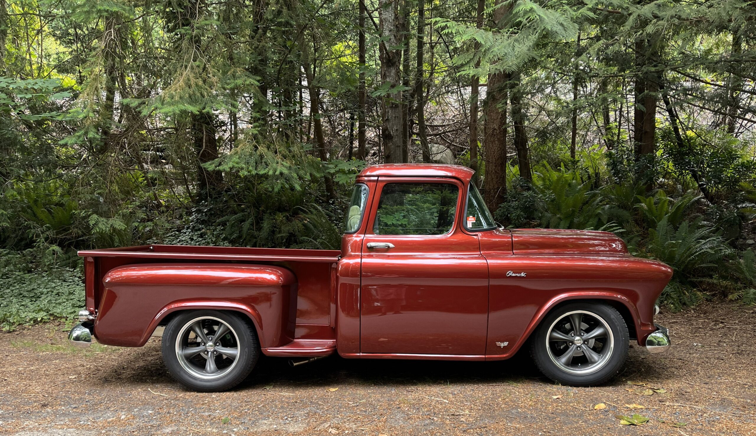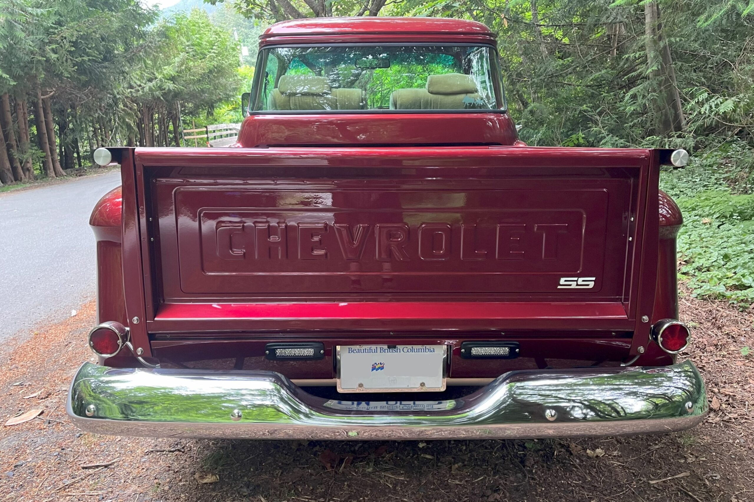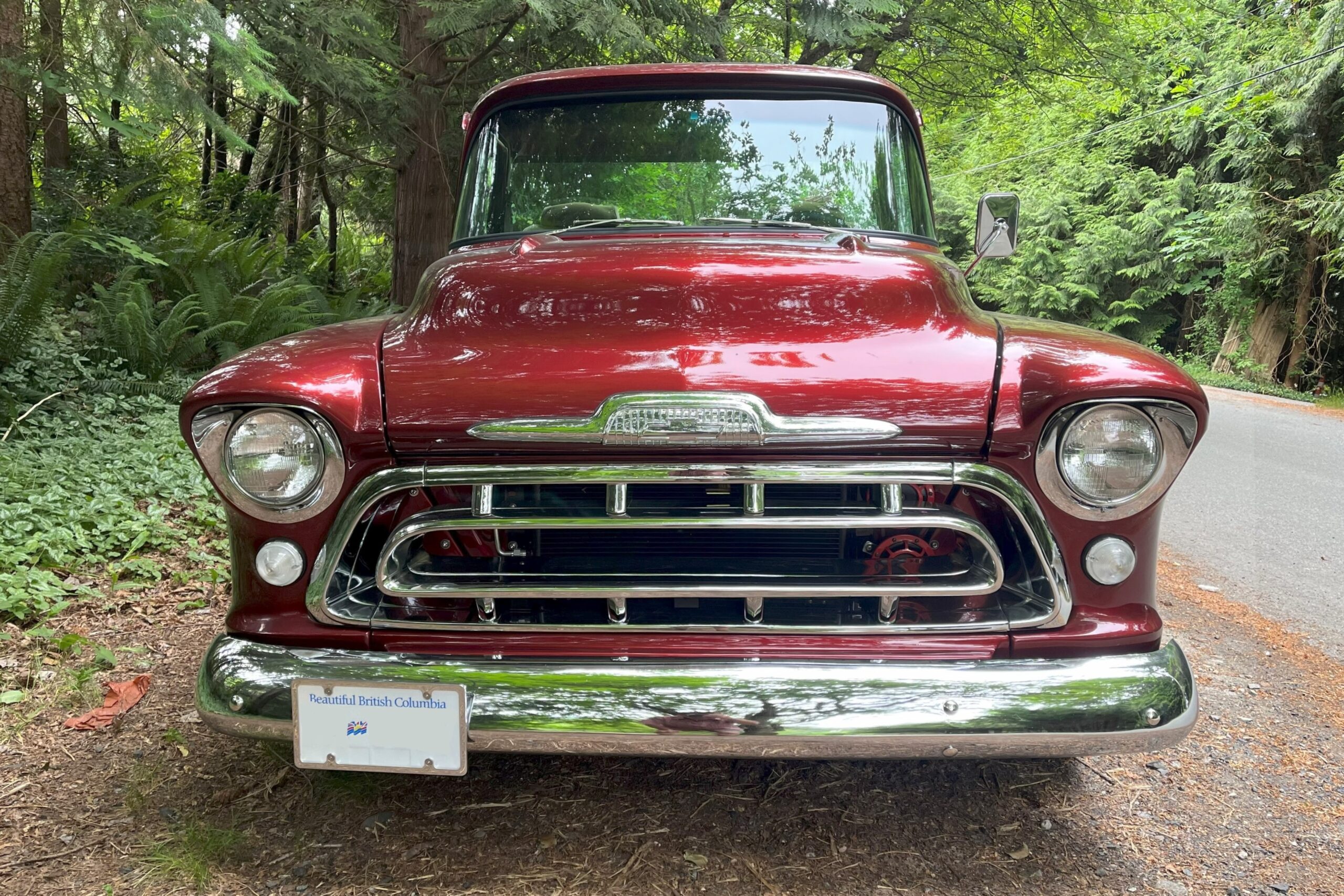 1957 Chevrolet Big Window Step Side Pickup. Immaculate ground up restoration, GM LT1 V8 with factory fuel injection mated to a Tremec T56 6 spd transmission, limited slip differential. Billet hood hinges and serpentine pulley kit. QA1 coil over suspension front (independent) and rear (parallel bar) with heavy duty sway bars. Disc brakes with stainless brake lines. Custom aluminium fuel tank, all stainless fasteners. One piece glass electric windows with central locking and air conditioning (Vintage Air). Premium Kenwood/Infinity sound with backup/forward facing cameras. VDO gauges and auto headlights. Auto dimming mirror. Polished stainless tilt steering column with leather wrapped steering wheel.