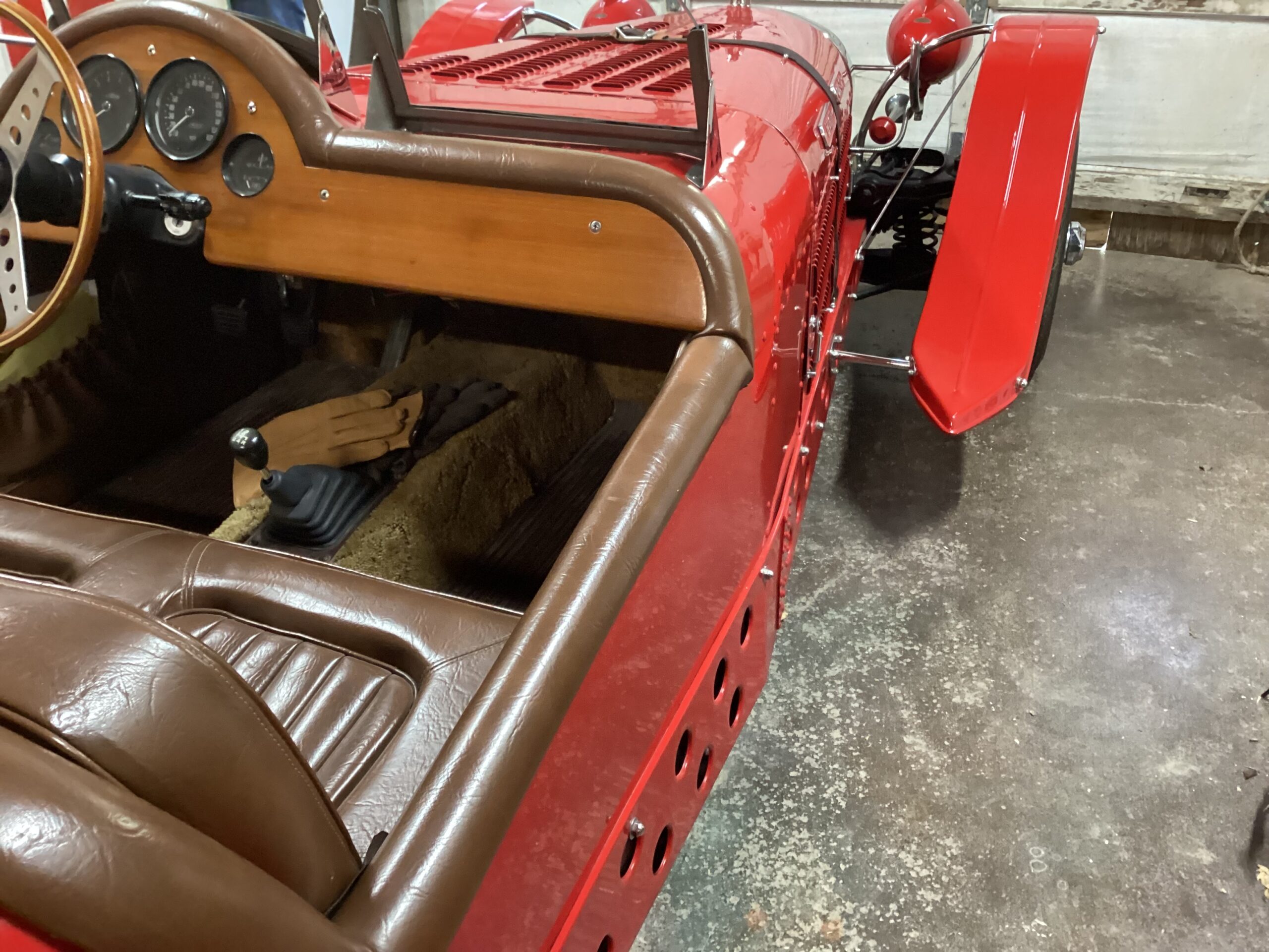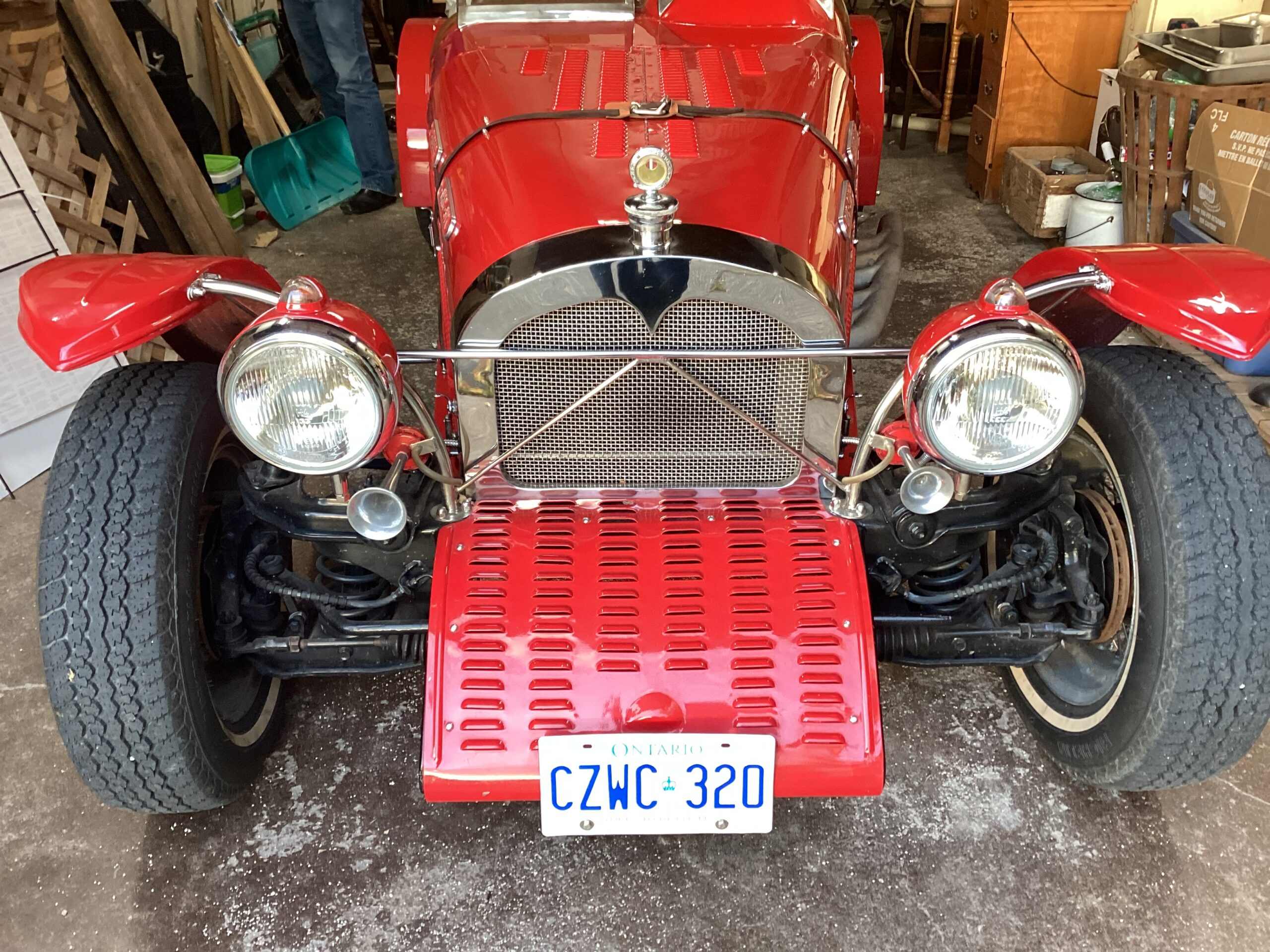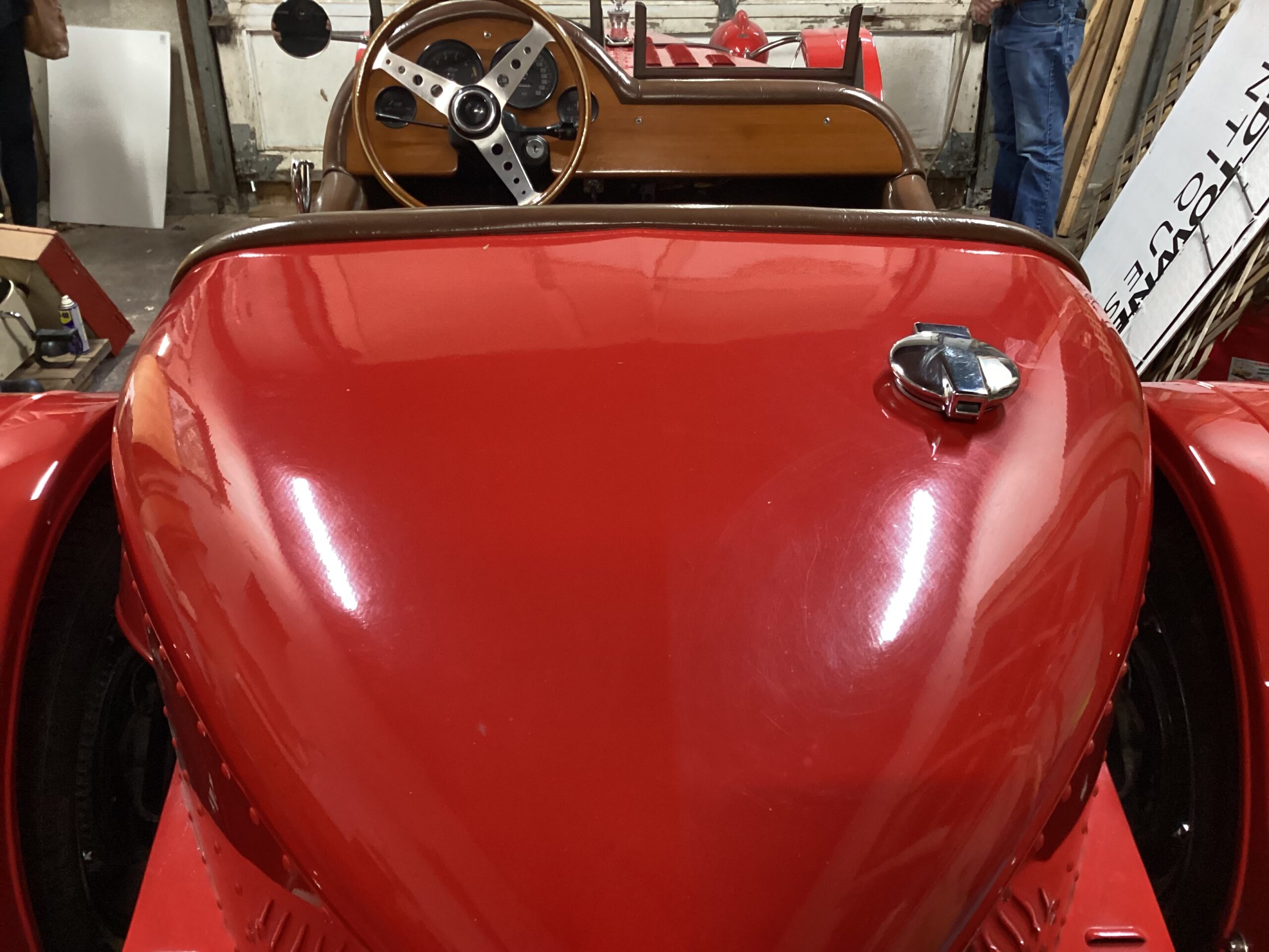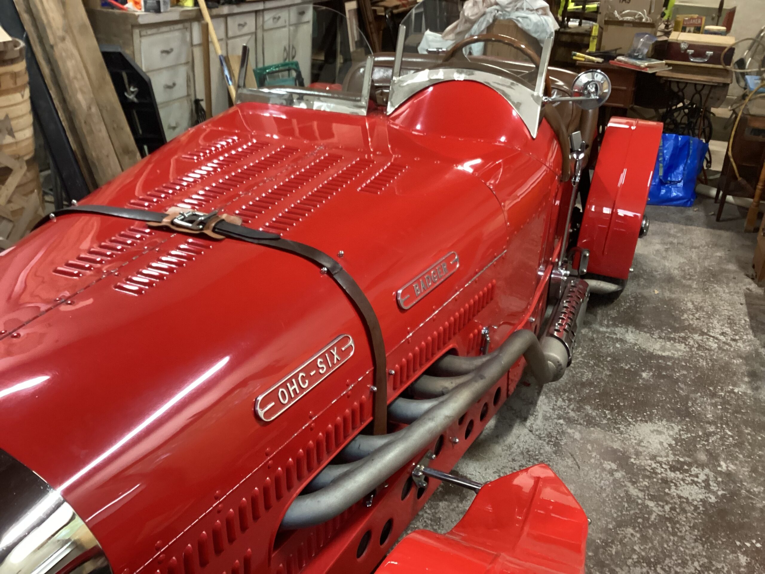 Beautifully done replica of a 1927 Bugatti Boat Tail Roadster in brilliant red, it took 40 experts to replicate this all aluminum riveted body with 3900 Rivets, uni frame, independent front end from a Pinto, driveline is from a Datsun 240z ( engine is straight 6, manual 4 speed transmission, rear end), engine has Dual Jaguar Oil Carbs, new battery, new alternator, rebuilt radiator, everything works except fuel guage, runs and drives very well, 138 mph in 3rd gear, there is a pinhole on the top of fuel tank, power brakes, manual steering, seat belts, 15” Jaguar spoked rims with spin-offs, 3rd owner, gas tank cover is fiberglass, no chrome, all stainless trim highly polished, air horns.