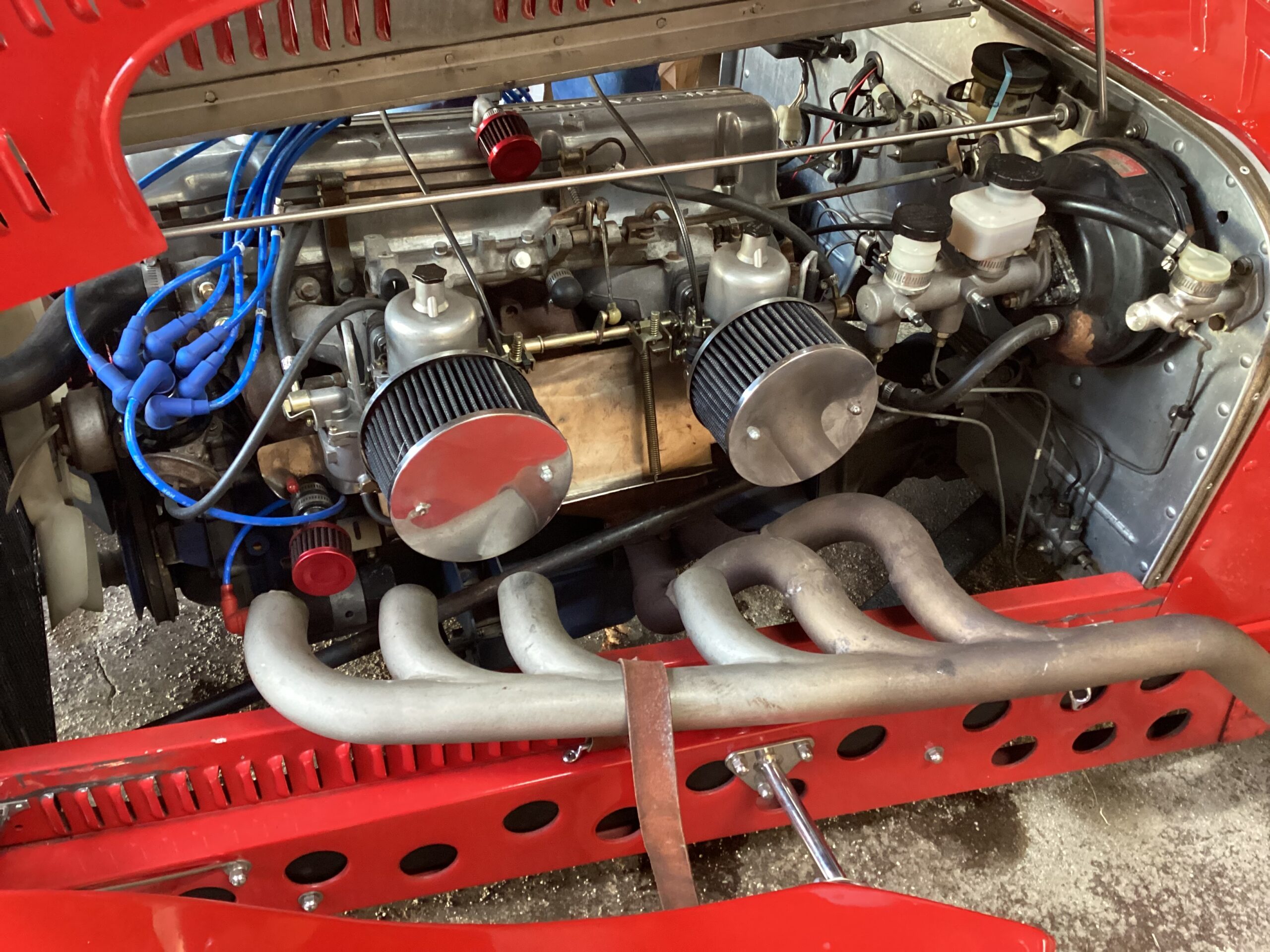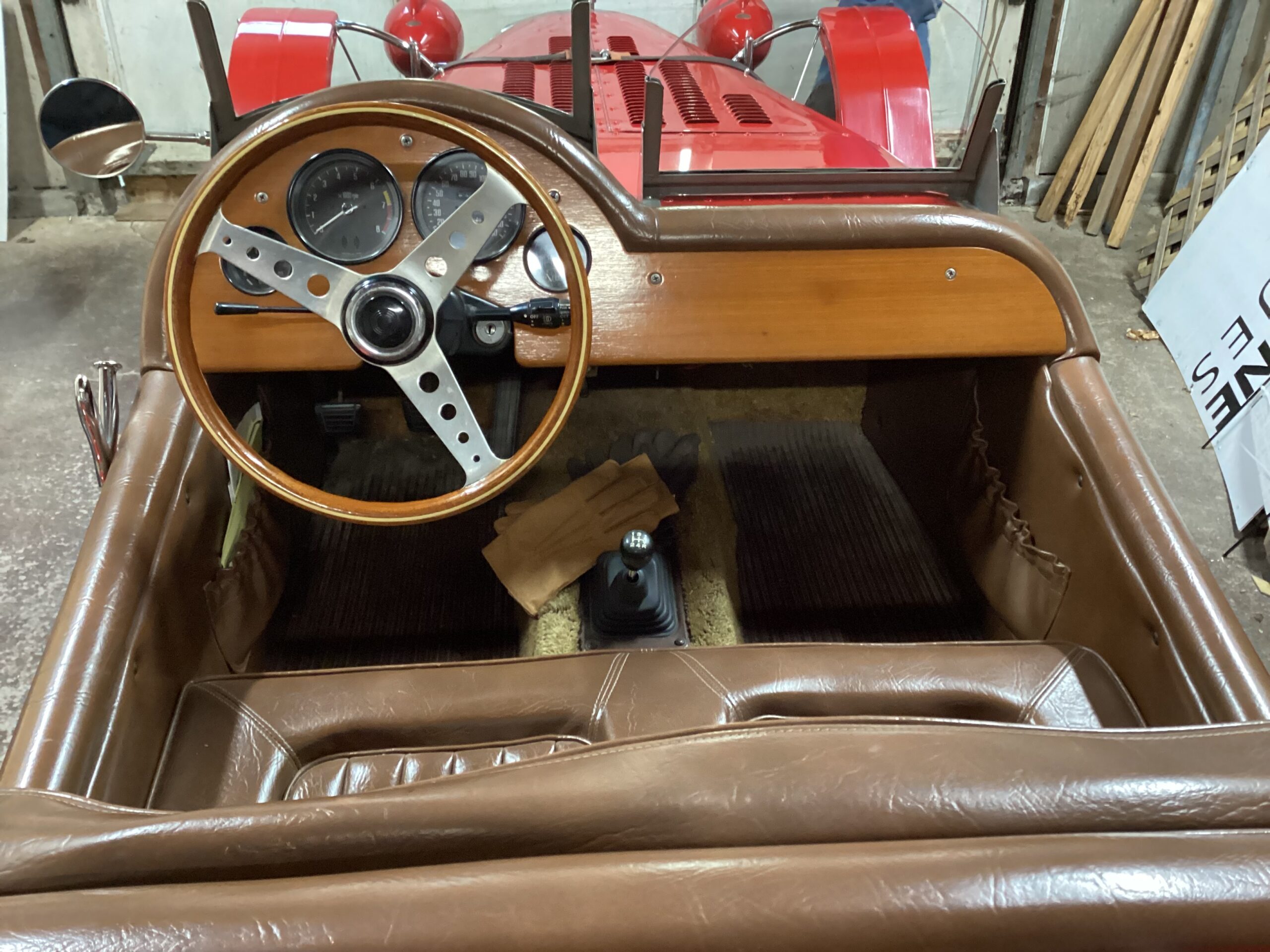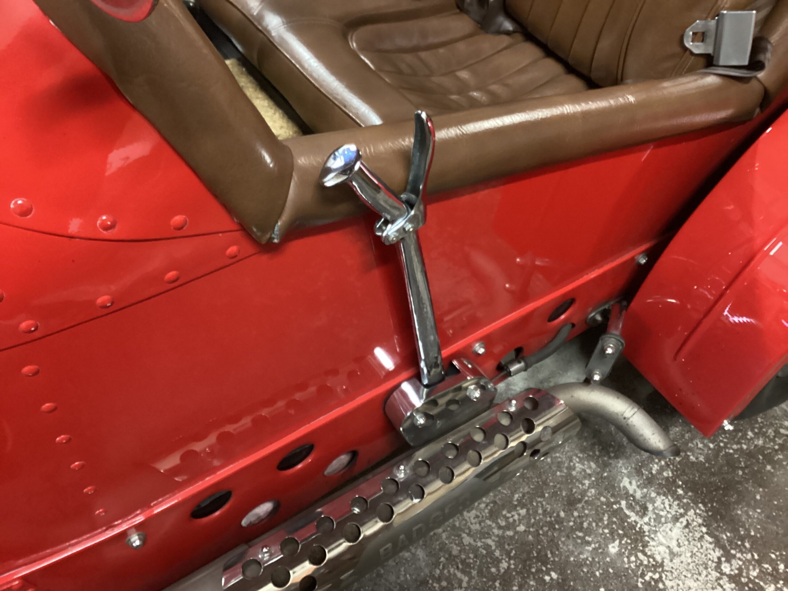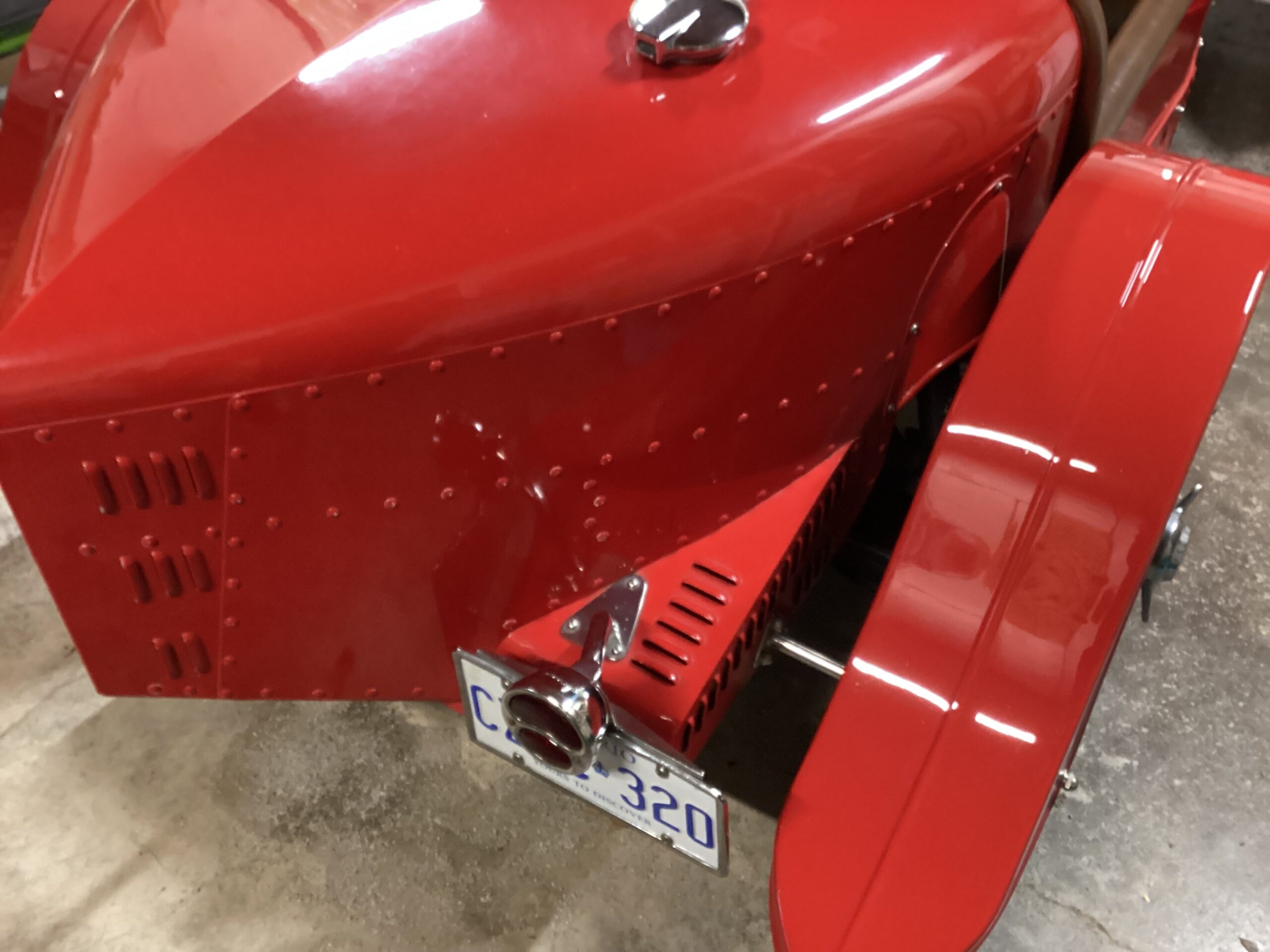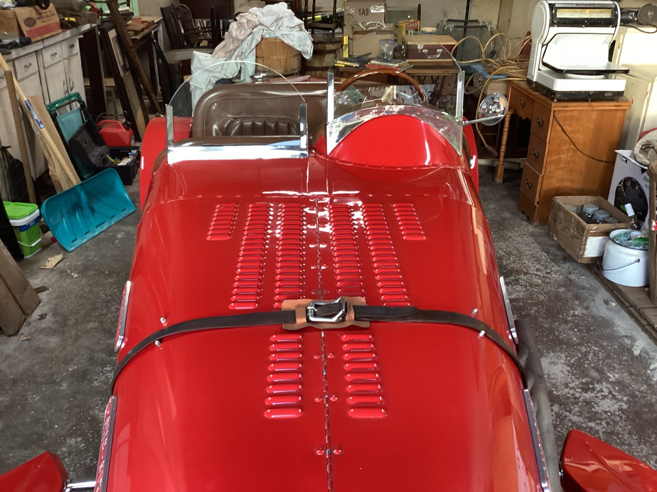 Beautifully done replica of a 1927 Bugatti Boat Tail Roadster in brilliant red, it took 40 experts to replicate this all aluminum riveted body with 3900 Rivets, uni frame, independent front end from a Pinto, driveline is from a Datsun 240z ( engine is straight 6, manual 4 speed transmission, rear end), engine has Dual Jaguar Oil Carbs, new battery, new alternator, rebuilt radiator, everything works except fuel guage, runs and drives very well, 138 mph in 3rd gear, there is a pinhole on the top of fuel tank, power brakes, manual steering, seat belts, 15” Jaguar spoked rims with spin-offs, 3rd owner, gas tank cover is fiberglass, no chrome, all stainless trim highly polished, air horns.